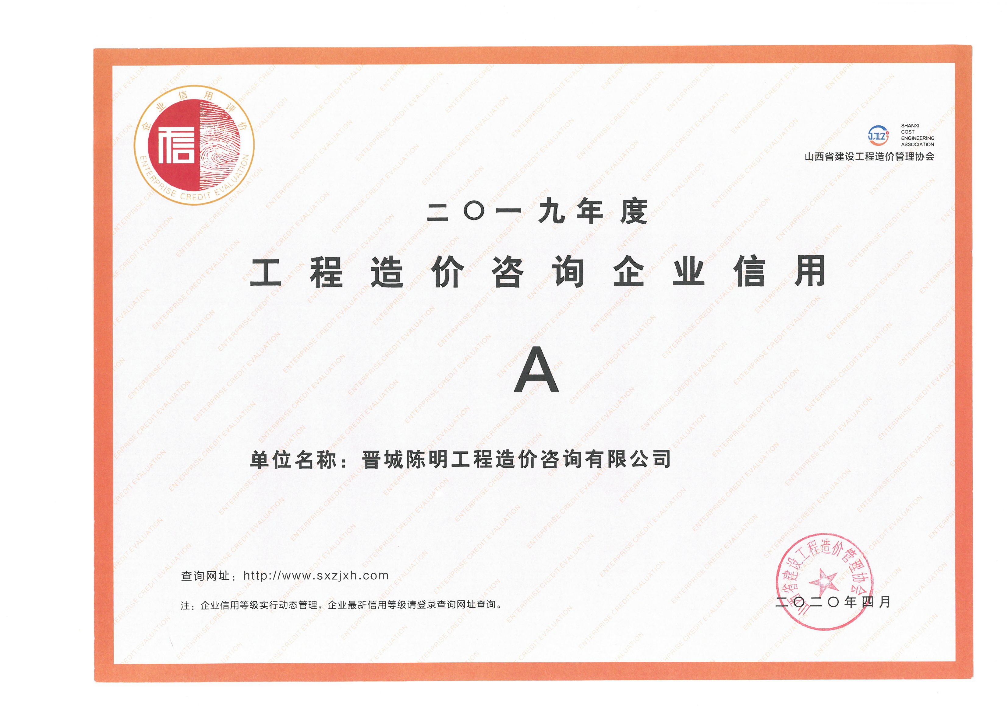 工程造價咨詢企業(yè)信用A級